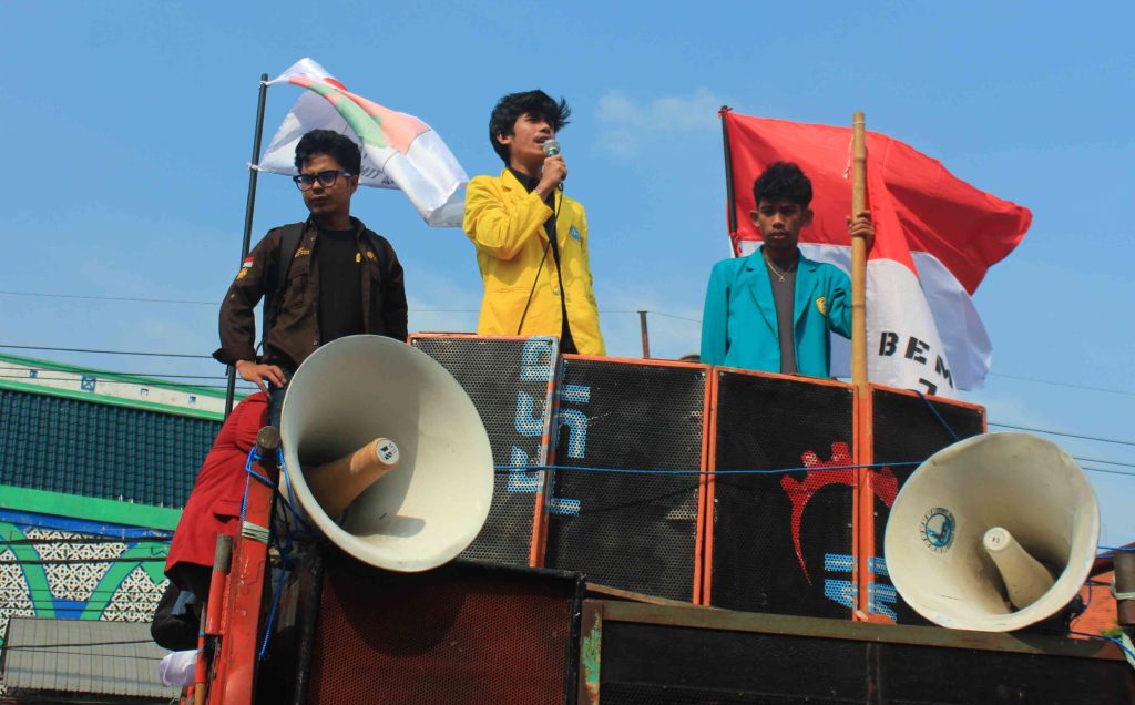 Dalam aksi tersebut, massa menyuarakan sejumlah tuntutan strategis, dengan penekanan utama pada penolakan terhadap wacana pemilihan kepala daerah (Pilkada) melalui DPRD.